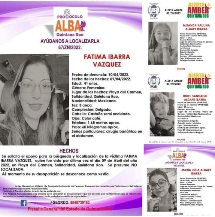 A través de la activación de la Alerta Amber la Fiscalía General de Justicia de Quintana Roo inició las movilizaciones para encontrar a una familia originaria de Nuevo León que desapareció en Playa del Carmen, Solidaridad.