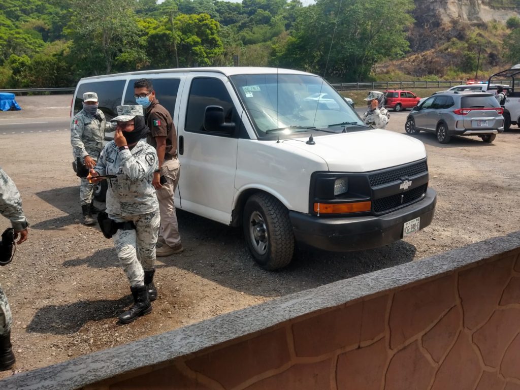 Elementos de la Guardia Nacional rescataron a 25 migrantes cuando eran trasladados de manera ilegal en una camioneta tipo van, color blanca con placas de circulación del estado de Guerrero.