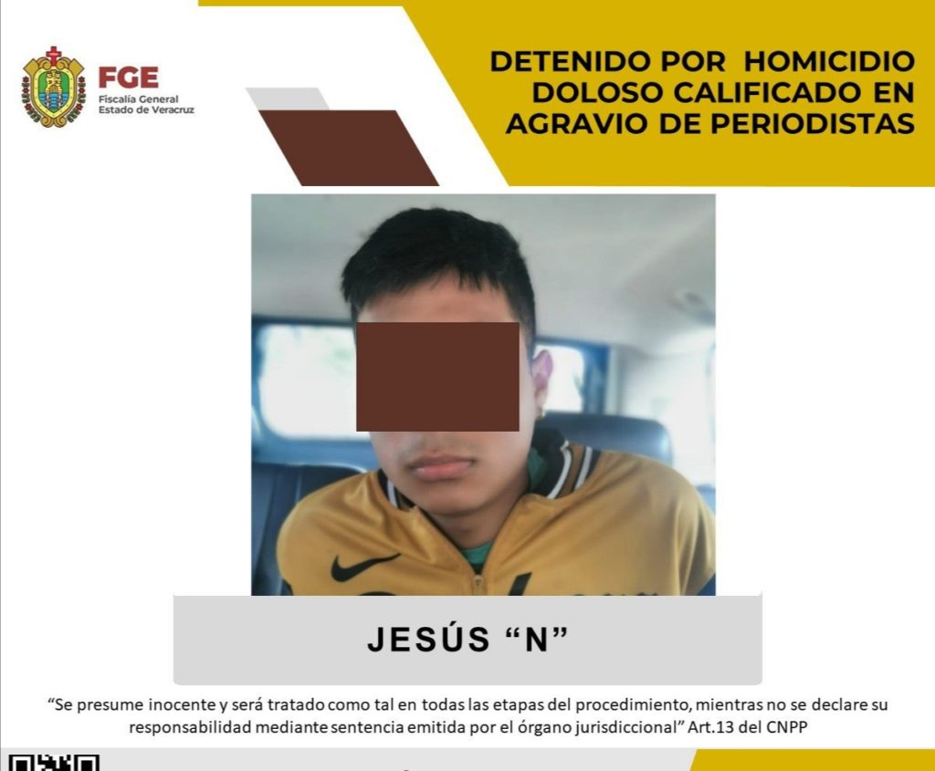 XALAPA, Ver.,17 mayo 2022.- La Fiscalía General del Estado informa que elementos de la CONASE que trabajan en coordinación con esta Fiscalía, ejecutaron mandamiento judicial en contra de Antonio de Jesús “N”, alias “El Mara”, por el presunto delito de homicidio doloso calificado, cometido en agravio de la directora del portal El Veraz, Yessenia Mollinedo Falconi y la reportera Sheila Johana García Olivera, hechos suscitados el pasado 9 de mayo del presente año en el municipio de Cosoleacaque.