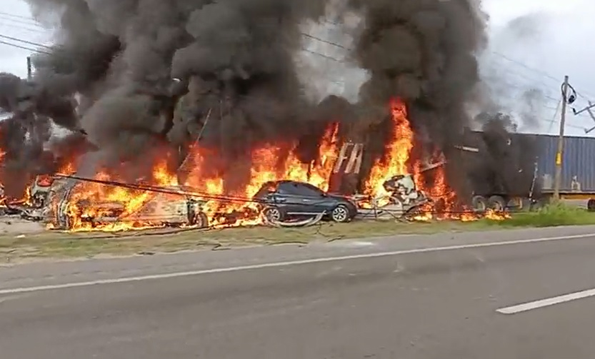 En la mañana de hoy lunes un tráiler perdió el control de la unidad, choco contra postes y termino contra vairos vehículos que se encnotraban estacionados de una empresa.