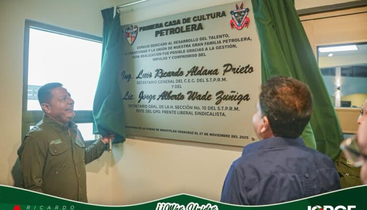 El momento cumbre del día se vivió en las instalaciones de la Casa de la Cultura Petrolera, donde el líder nacional, Ing. Luis Ricardo Aldana Prieto, corto como testigo de honor el listón, en la inauguración de la primera Casa de la Cultura Petrolera de todo el país, una obra sin precedentes que marca un antes y un después en la vida cultural de nuestra organización. Acompañaron este acto los integrantes del C.E.G., destacando la presencia del C. Sergio Lorenzo Quiroz, secretario del Interior, Actas y Acuerdos del STPRM; el Lic. Leopoldo Torres García, Secretario del Exterior; los Líderes políticos locales y Secretarios Generales de la Zona Sur; Coordinadores regionales de las zonas Norte, Centro y Sureste; así como el Mtro. Christopher Valenzuela Ponce en representación del Director General de PEMEX, Dr. Víctor Rodríguez Padilla; titulares del Área de Recursos Humanos en la Zona Sur; y autoridades municipales encabezadas por la alcaldesa, Dra. Carmen Medel Palma, y el alcalde electo, Lic. Guillermo Reyes Espronceda.